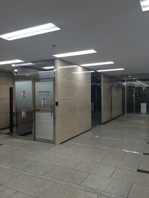 喫煙所作成の施工中の写真です。この工事で一番大変なのは排煙をするための煙突をビルのどこに設置するか、だそうです。適当に排煙するとまた近隣のビルからクレームが来るからです。
